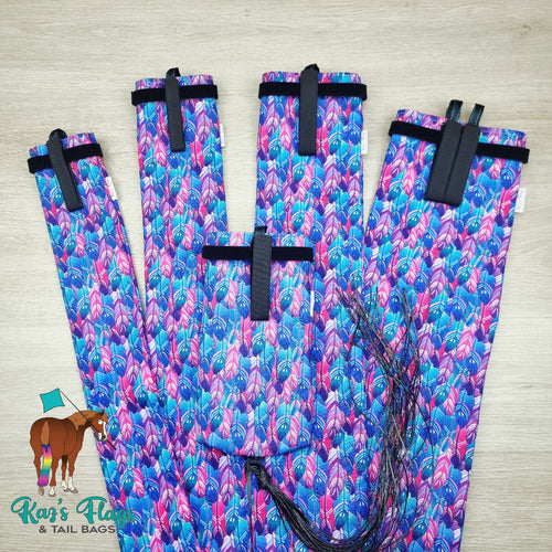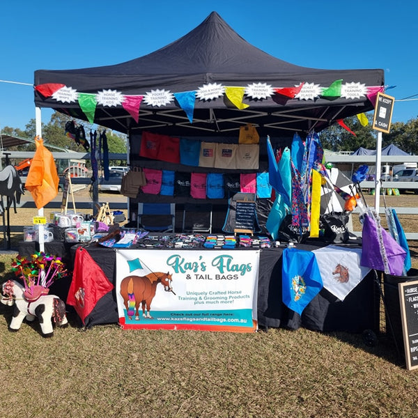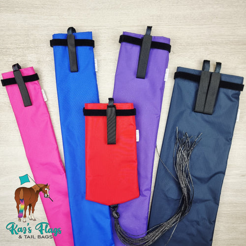 In 2015, our journey started with a handmade horse training flag given to participants at a local horsemanship clinic. Inspired by the positive feedback, we identified a niche to develop a quality equine brand with innovative, uniquely crafted products for horse and rider. Through a deep passion for horses and horsemanship, Kaz's Flags & Tail Bags was born, launching on Facebook Jan 29th 2016, followed by Instagram, eBay, and our website in 2021.