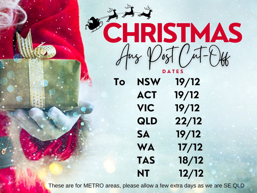 Please note the cut off dates if you would like the best chance of your parcels arriving in time.