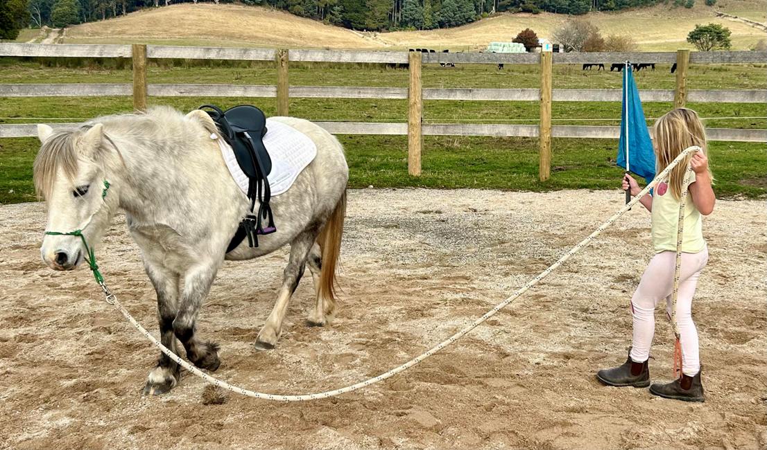 Desensitisation: Gently wave the flag around the horse to help it get used to the movement and sound.